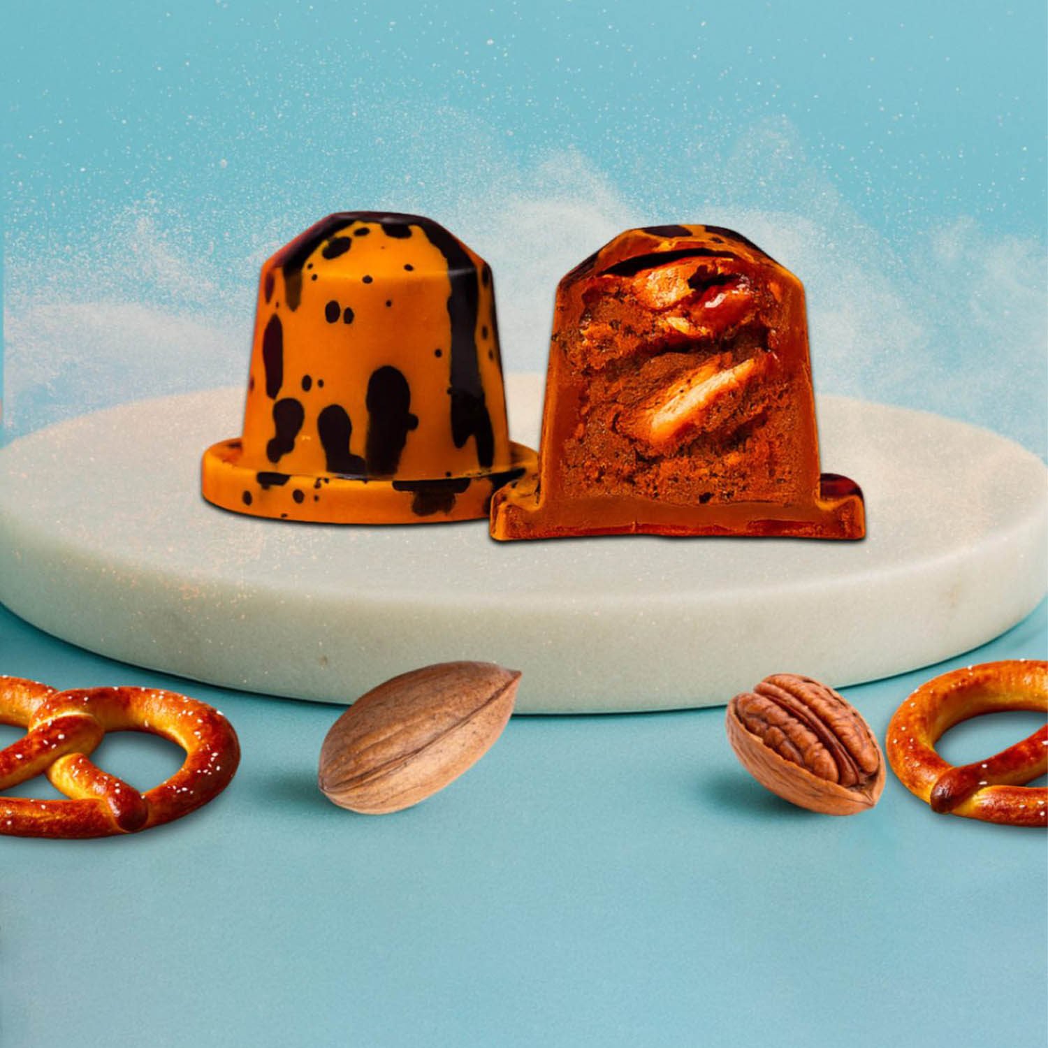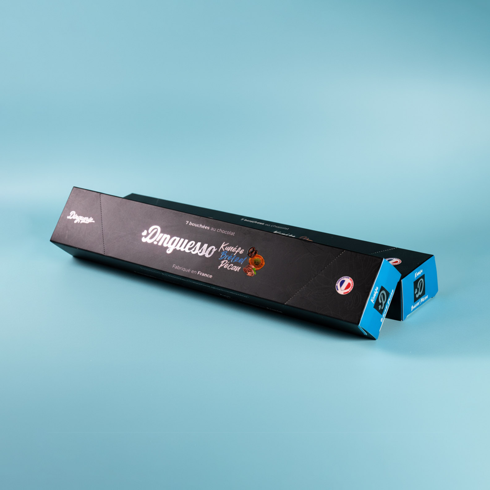 Le Dinguesso Kunéfe Brétzel est une création gourmande inspirée de notre célèbre tablette. Composé de 7 bouchées au chocolat, ce coffret allie le fondant du praliné à la touche croustillante du brétzel et la douceur du kunéfe. Un concentré de plaisir pour les amateurs de chocolat et de sensations sucrées.